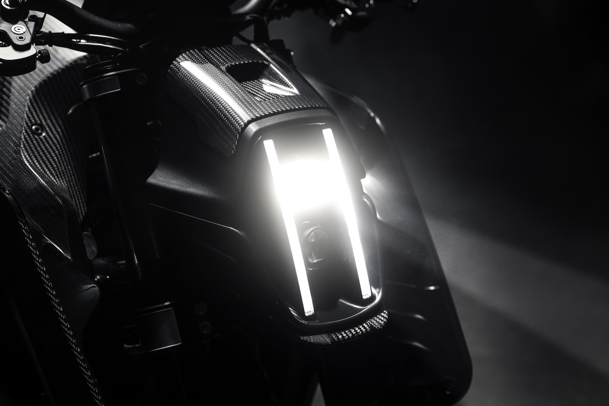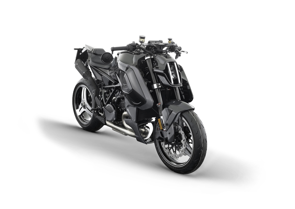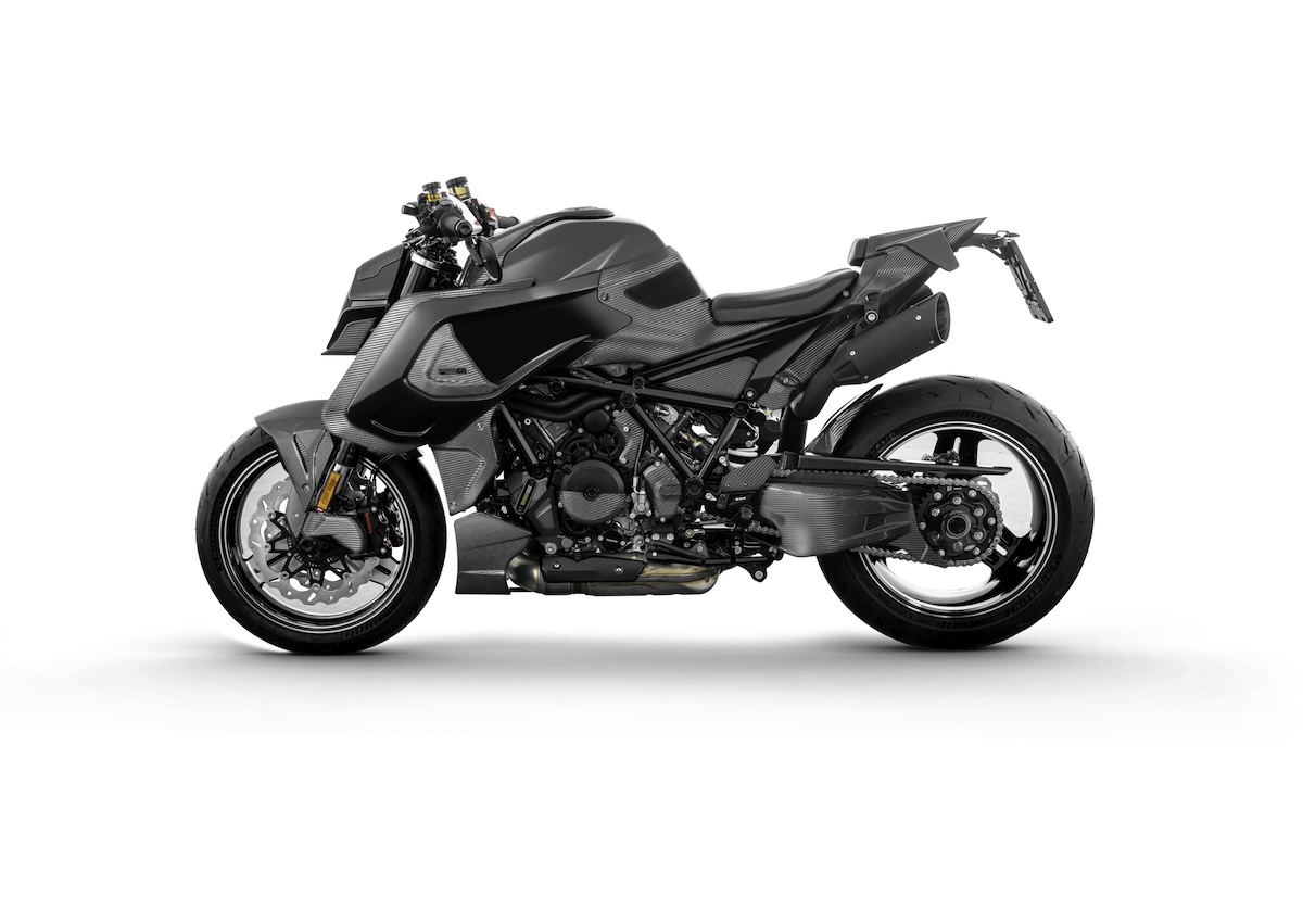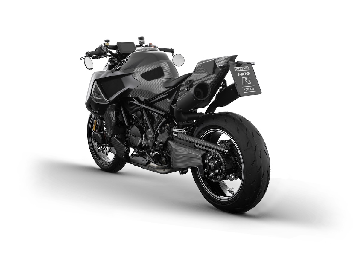 From the moment you lay eyes on its aggressive stance and carbon-cloaked bodywork, it’s clear that the BRABUS 1400 R is more than just a KTM with fancy paint. The “Midnight Veil” colorway exudes stealth luxury, amplified by the extensive use of exposed carbon fiber—visible in the custom WIDESTAR bodywork, tank fairings, belly pan, side spoilers, ignition cover, and rear wheel elements. The front-end presence is brutal and beautiful all at once, thanks to a bespoke carbon mask fitted with signature BRABUS LED lighting and a daytime running light configuration that echoes the marque’s automotive lineage.